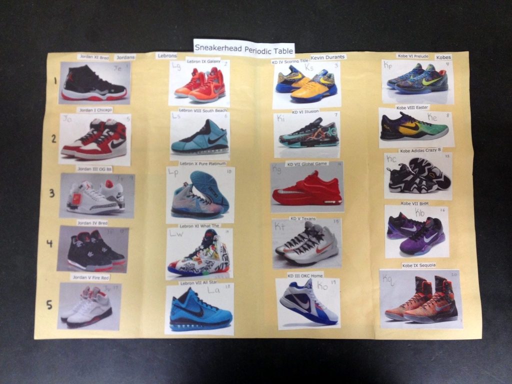 My students have created Periodic Tables for all kinds of themes! The themes range from Friends characters to types of cereal, sneakers to surfboards, Boy Scout trips to places they’d like to travel!